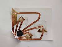 Now the circuit assembly which I did on a separate cardstock panel. Three things are needed- 1. power source, 2. light source and 3. conductor. So I got 1. button battery 3v, 2. light emitting diode and 3. Copper foil tape respectively. I never felt so happy to have Amzon in my life, I could not believe, I will find things I needed so quickly so that this card will see the light of the day...😄. Two things is must when placing the circuit 1. each light source will need